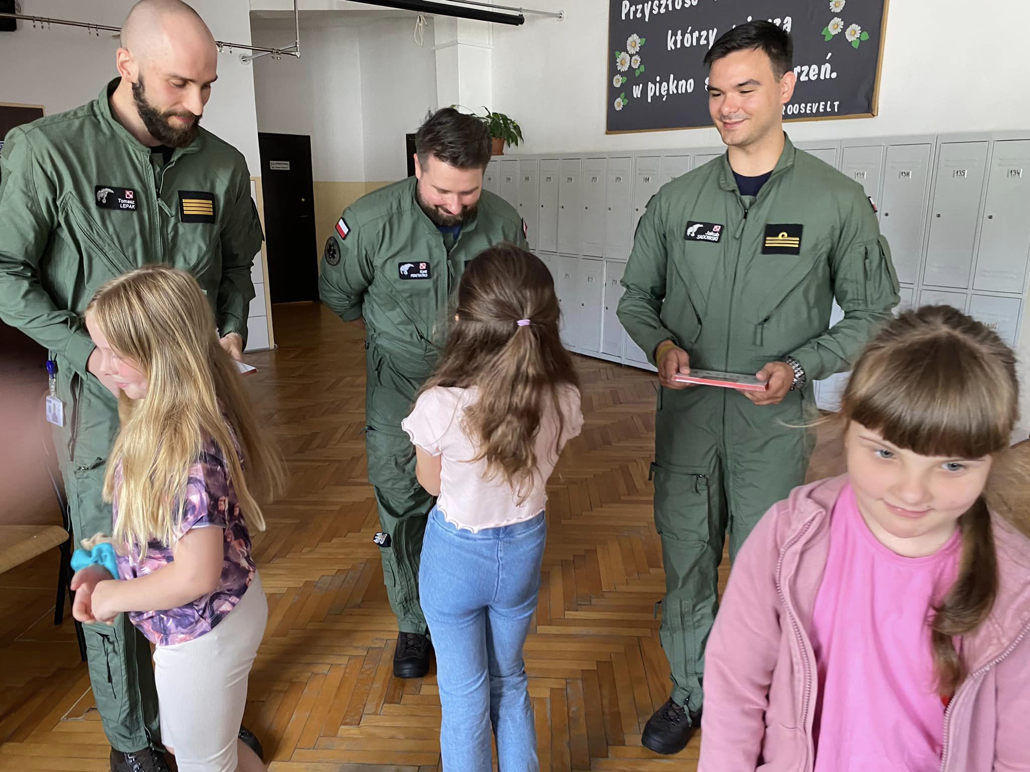 Trzej panowie: pilot i dwaj ratownicy medyczni, przedstawili charakterystykę swojej pracy, opowiedzieli o samolotach, dzięki którym mogą nieść pomoc na morzu, odpowiedzieli na nurtujące dzieci pytania związane z ich pracą. A na koniec, by tradycji stało się za dość, zasłużonym uczniom rozdali upominki.