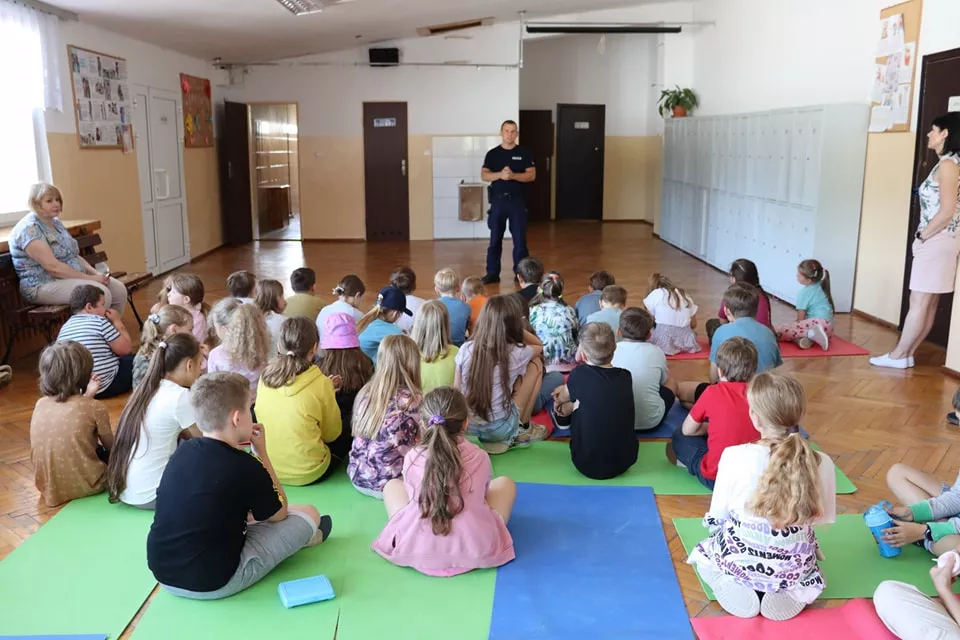 Zbliżają się wakacje, dlatego naszą szkołę odwiedził dzielnicowy pan Mariusz Pszon, aby przypomnieć uczniom zasady bezpiecznego zachowania się podczas letniego wypoczynku.