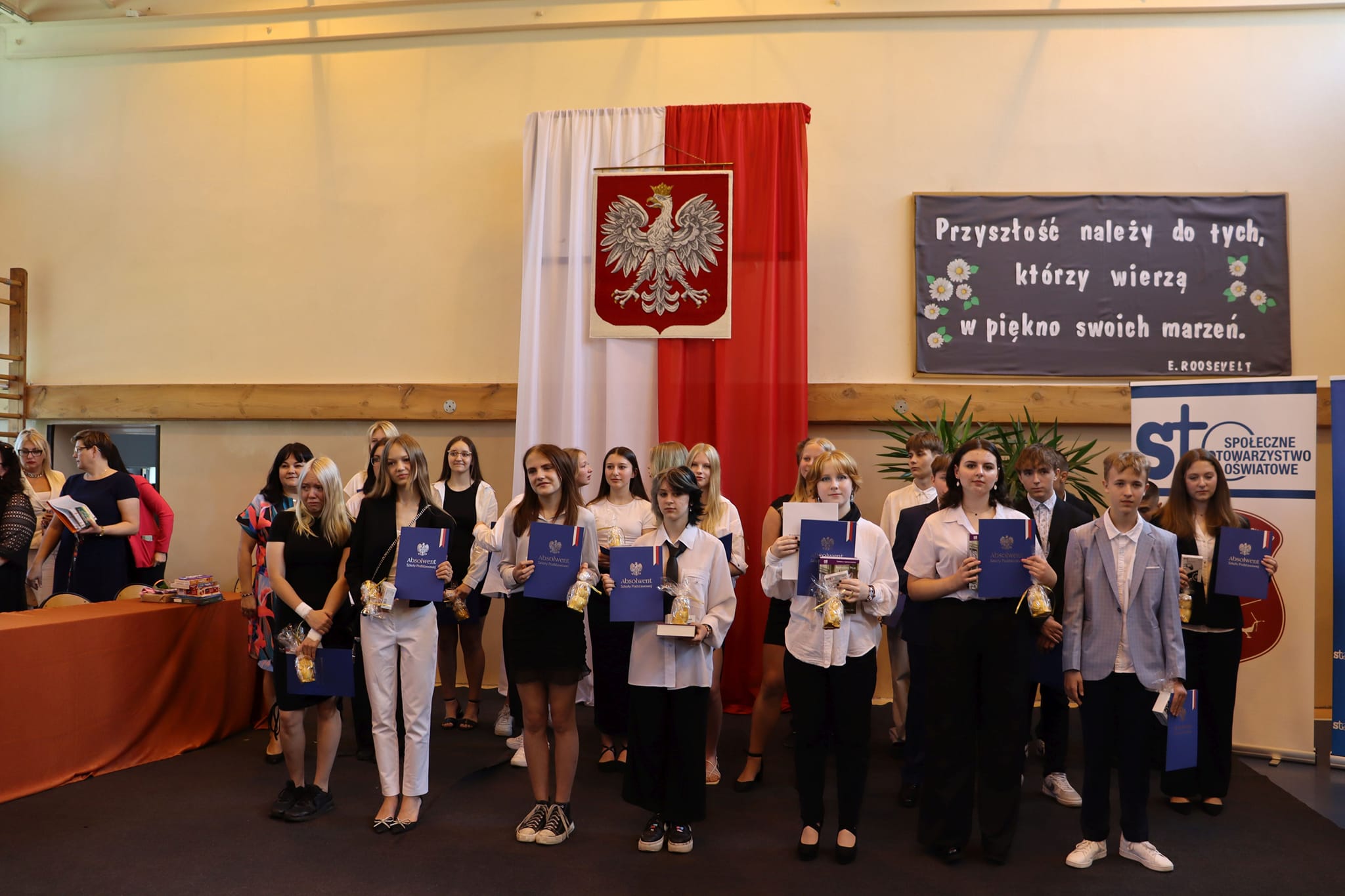 21 czerwca br. o godzinie 9.00 odbyła się uroczystość zakończenia roku szkolnego 2023/2024 dla uczniów klas 1-3 szkoły podstawowej. W uroczystości wzięli udział rodzice, prezes Samodzielnego Koła Terenowego nr 238 STO w Darłowie pani Lidia Kozińska, pan wiceburmistrz Miasta Darłowa pan Rafał Nagórski, proboszcz parafii Darłówko Ojciec Marek Marcinkowski. Po wprowadzeniu sztandaru odśpiewano hymn państwowy. W dalszej części uroczystości nastąpiła zmiana składu pocztu sztandarowego. Następnie głos zabrała pani dyrektor Joanna Tarkowska, która podziękowała nauczycielom, wychowawcom, pracownikom niepedagogicznym, rodzicom i uczniom za wspólnie spędzony rok szkolny. Wychowawcy wręczyli wszystkim uczniom nagrody książkowe, które zostały zakupione przez Radę Rodziców. Rodzice klasy III otrzymali podziękowania za pracę na rzecz szkoły.
